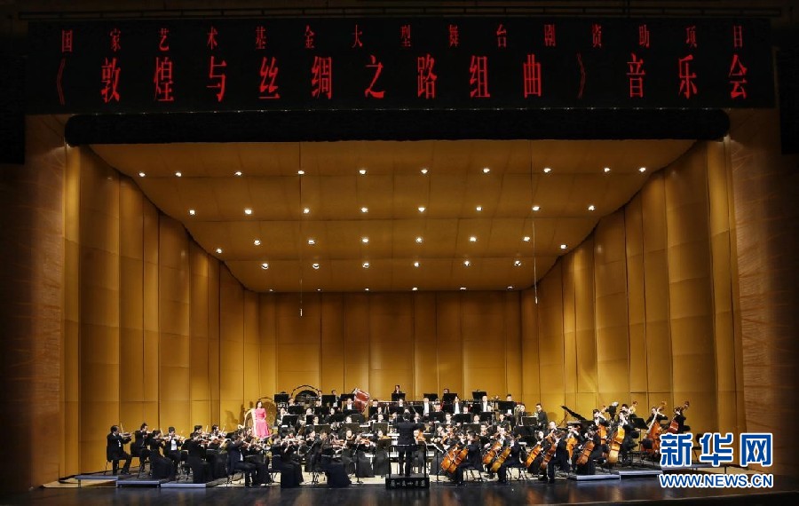 《敦煌與絲綢之路組曲》由俄羅斯作曲家布列沙克·維克多·瓦西里耶維奇創(chuàng)作,分為《朝圣敦煌》《祝福綠洲》《莫高圣禮》《藝術(shù)圣殿》《絲路情歌》《古道回聲》《海上絲路》《力與速度》和《和平萬歲》九個樂章。組曲追溯古代絲綢之路的繁榮昌盛,歌頌“一帶一路”倡議背景下今日絲綢之路的和平崛起,暢想未來絲綢之路的輝煌盛景。新華網(wǎng)發(fā)(薛強(qiáng) 攝)