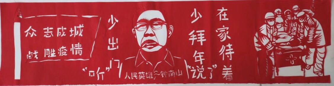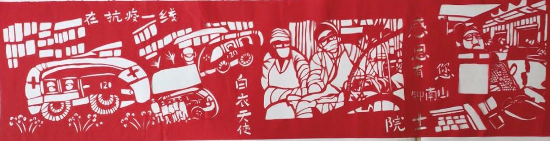 中國甘肅網(wǎng)2月24日訊  近日,西固區(qū)文化館收到了一份“特殊”的作品,來自蘭州市級(jí)非遺項(xiàng)目傳承人張旭老師。張旭在抗疫期間特別創(chuàng)作了《眾志成城》《感恩有你》《逆行者》等剪紙長卷作品,所有作品全長10余米。