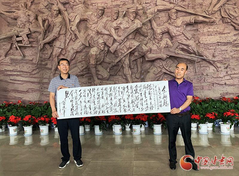 當(dāng)天,“追尋紅色足跡 弘揚(yáng)延安精神”——紀(jì)念中央紅軍長征到達(dá)甘肅85周年調(diào)研采訪團(tuán)一行,還參觀了兩當(dāng)兵變舊址及全國青少年教育基地。省延安精神研究會(huì)副會(huì)長張富奎向兩當(dāng)兵變紀(jì)念館贈(zèng)送了毛體書法作品。
