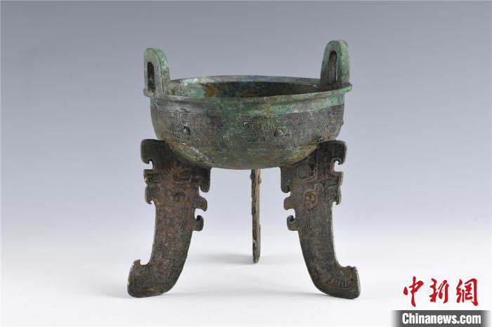 同時,酒務(wù)頭墓地大墓的形制、青銅禮器組合和器型紋飾風(fēng)格等表現(xiàn)出其與商文化演進(jìn)過程的同一性與復(fù)雜性。墓地不僅出土了成套系的樂器,如鼓、鈴、鐃等,還出土了種類豐富、造型各異的青銅鼎,其中不乏一些形體較大的重器,凸顯其禮器功能。其中,子匿圓鼎表面飾獸面紋、雷紋,足根部飾獸面、凸弦紋,鼎內(nèi)壁鑄有“子匿”銘文,應(yīng)為族徽或人名。這種深腹、圜底、三足鼎的形制以及紋飾是商代晚期青銅鼎的典型樣式。