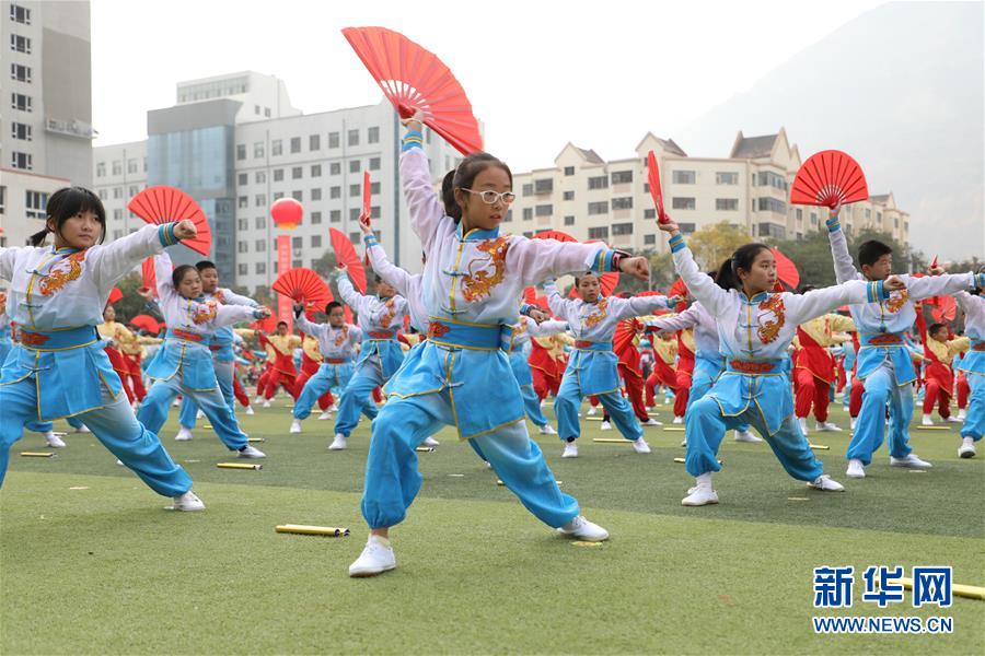 11月4日,蘭州市寧興小學(xué)學(xué)生在活動(dòng)現(xiàn)場表演武術(shù)操。新華社記者 張智敏 攝