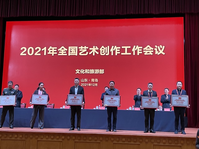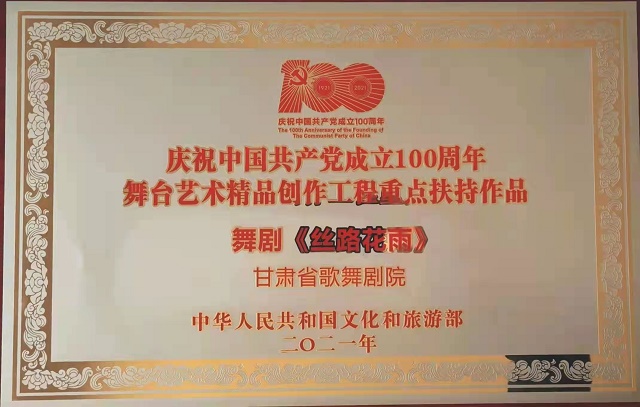中國甘肅網(wǎng)12月19日訊 12月18日,文化和旅游部在山東省青島市召開的“2021年全國藝術(shù)創(chuàng)作工作會(huì)議”上,發(fā)布了“慶祝中國共產(chǎn)黨成立100周年舞臺(tái)藝術(shù)精品創(chuàng)作工程”入選名單,頒發(fā)了“慶祝中國共產(chǎn)黨成立100周年舞臺(tái)藝術(shù)精品創(chuàng)作工程獎(jiǎng)牌”。甘肅省文化和旅游廳遴選推薦的舞劇《絲路花雨》《大夢敦煌》《彩虹之路》、隴劇《官鵝情歌》、小品《你笑起來真好看》等5部舞臺(tái)藝術(shù)精品,經(jīng)文旅部評審正式入選“舞臺(tái)藝術(shù)精品創(chuàng)作工程重點(diǎn)扶持作品”。甘肅省歌舞劇院創(chuàng)排的舞劇《絲路花雨》作為12家“百年百部”工程受獎(jiǎng)單位在全國藝術(shù)創(chuàng)作工作會(huì)議上接受獎(jiǎng)牌和榮譽(yù)證書,甘肅省文旅廳、山東省文旅廳等參會(huì)代表12家領(lǐng)獎(jiǎng)單位上臺(tái)領(lǐng)獎(jiǎng),充分展現(xiàn)了文旅部對甘肅省入選作品質(zhì)量及組織工作的高度肯定。
