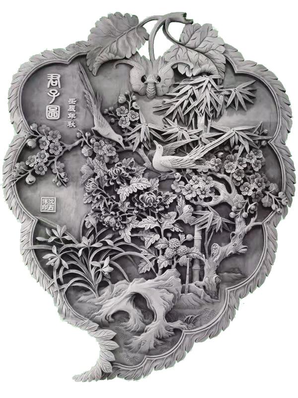 端詳沈占偉的作品,有栩栩如生的花鳥,大氣磅礴的山川,活靈活現的人物,能想到的體裁應有盡有??梢哉f遠看端莊大氣,近看細節(jié)精湛,尤其是對動植物的刻畫,仿佛通過他的刻刀賦予了生命,在原本冰冷的磚塊上呼之欲出,生機勃勃。難能可貴的是,他并不會限制自己的創(chuàng)作體裁,每一幅作品都是匠心之作,都傾盡了他的心血。