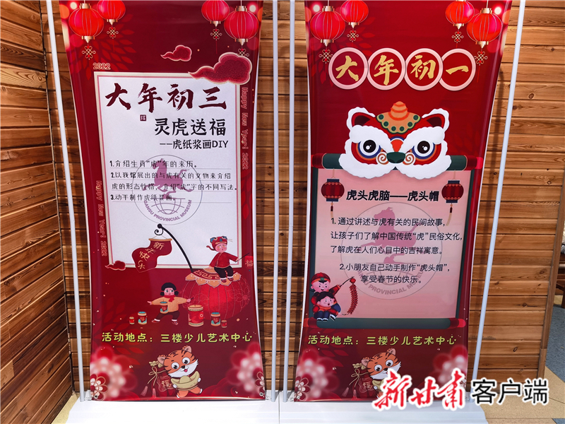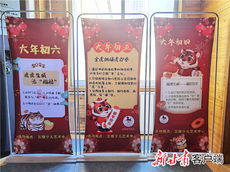 “后續(xù),還有大年初三的‘靈虎送福——虎紙漿畫(huà)DIY ’活動(dòng)、大年初四的‘?;⑸?mdash;—福燈DIY ’活動(dòng)、大年初五的‘金虎納?;⒂?rsquo;活動(dòng)、大年初六的‘虎虎生威添‘福祿’活動(dòng)’。”省博物館社會(huì)教育部主任盧冬介紹,每場(chǎng)活動(dòng)面向約30名小朋友開(kāi)展,經(jīng)過(guò)前期策劃準(zhǔn)備,除了省博物館社教部的10余名工作人員,給孩子們普及有關(guān)虎和北京冬奧會(huì)的知識(shí),還有來(lái)自西北師范大學(xué)、蘭州二十七中等校的學(xué)生志愿者,指導(dǎo)輔助孩子們玩游戲、做手工。