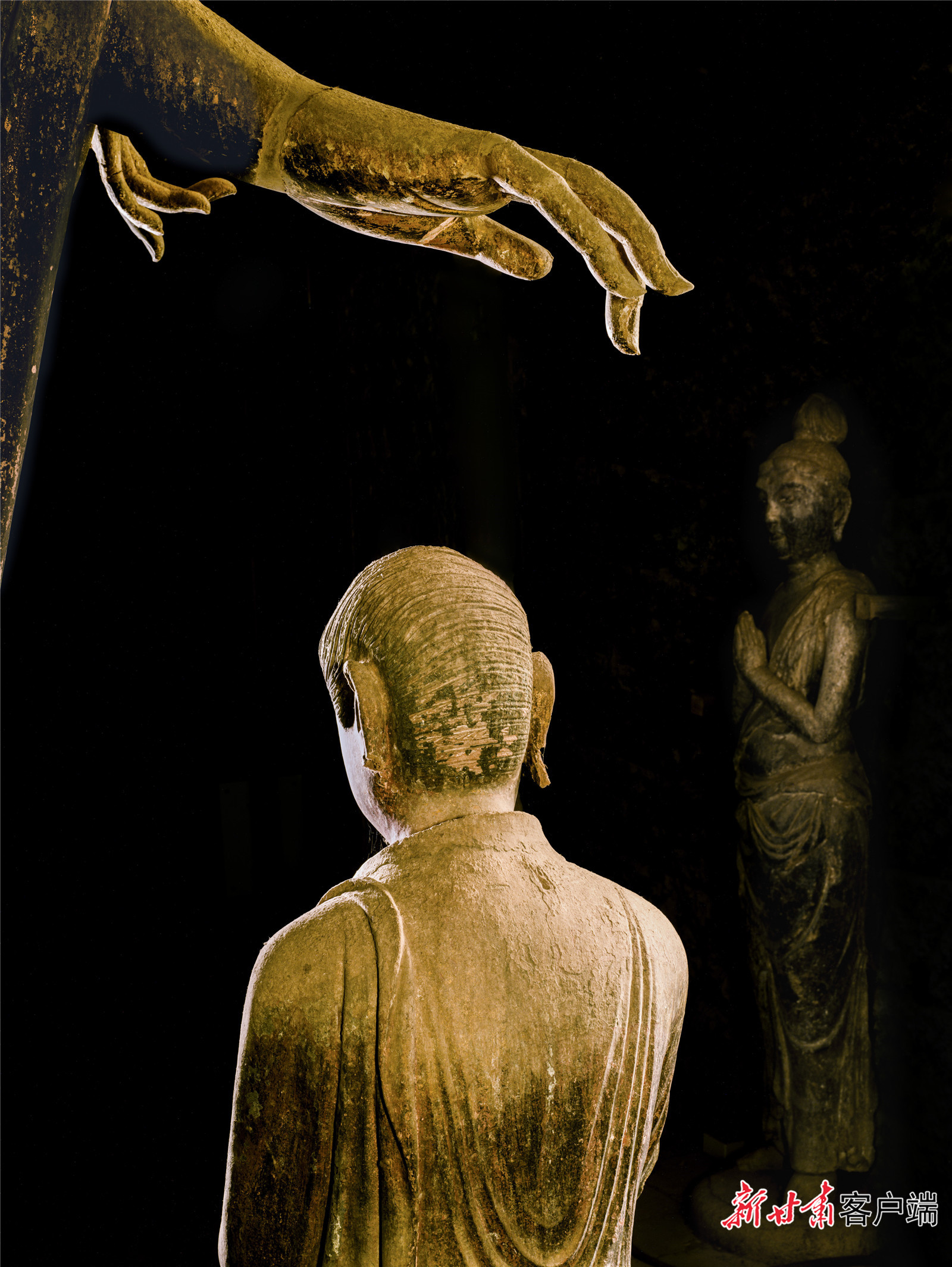 頭腦接受到太多沖擊后,吳健跳出敦煌再看敦煌藝術(shù)。他想,雕塑原來應該這么拍!那些雕塑的原型是活生生的人啊,應該跟人像拍攝結(jié)合起來。“攝影不同于照相,而是用光去繪畫。”