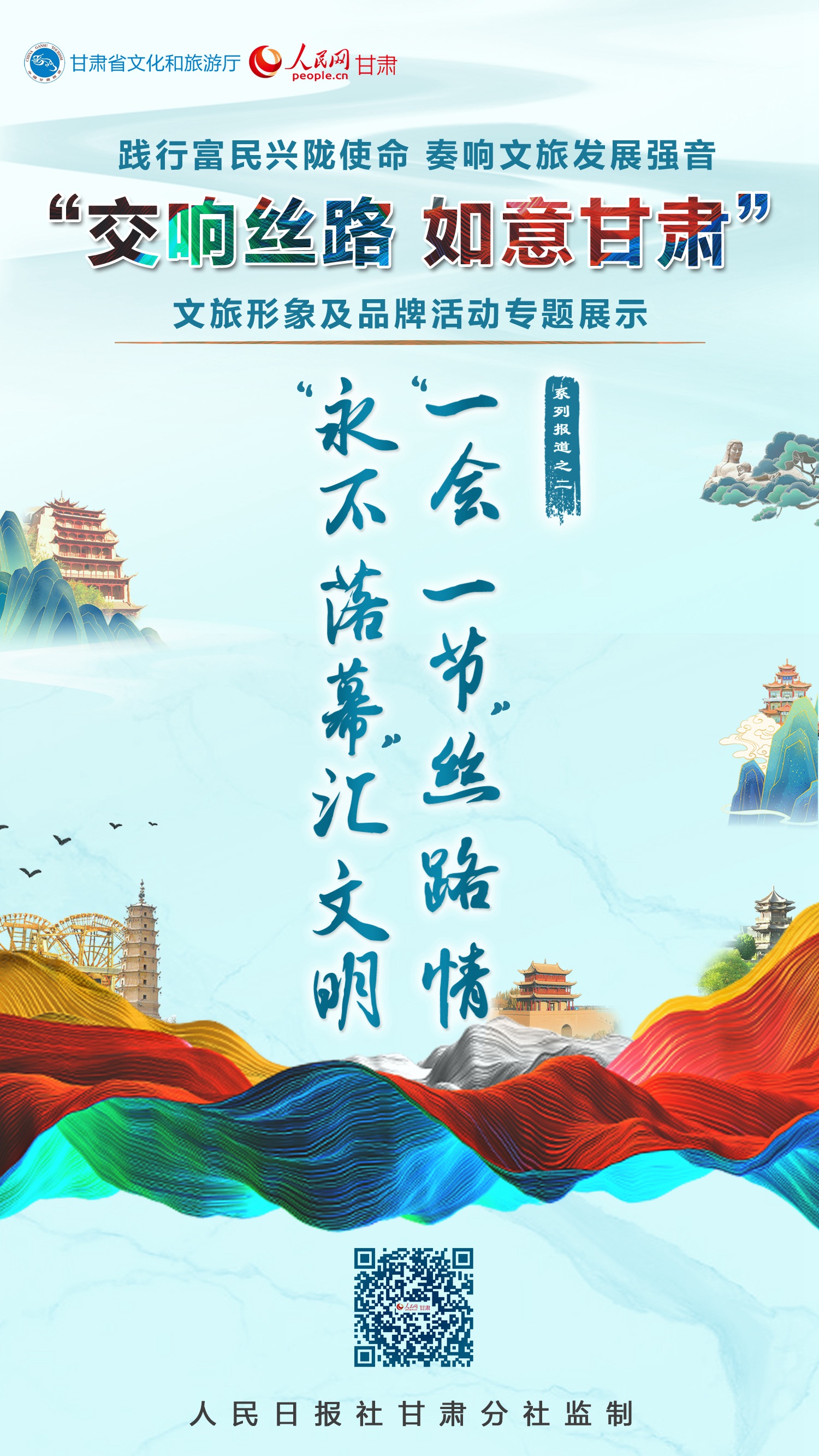 奮進(jìn)新征程,建功新時(shí)代。2022年全國兩會(huì)精神伴隨浩蕩春風(fēng)傳遍隴原大地。甘肅省文旅廳聯(lián)合人民網(wǎng)甘肅頻道推出“交響絲路·如意甘肅”文旅形象及品牌活動(dòng)線上專題展示,全面展現(xiàn)全省文旅系統(tǒng)將殷殷重托化為實(shí)干擔(dān)當(dāng),熱情講好甘肅故事、大力宣傳推介甘肅的生動(dòng)實(shí)踐和孜孜探索;激勵(lì)隴原兒女更加自信地宣傳甘肅歷史之美、山河之美、文化之美;引導(dǎo)社會(huì)各界人士持續(xù)關(guān)心關(guān)注、支持幫助甘肅文化和旅游業(yè)高質(zhì)量發(fā)展,合力打造文化興、生態(tài)美、百姓富的文化旅游強(qiáng)??!
