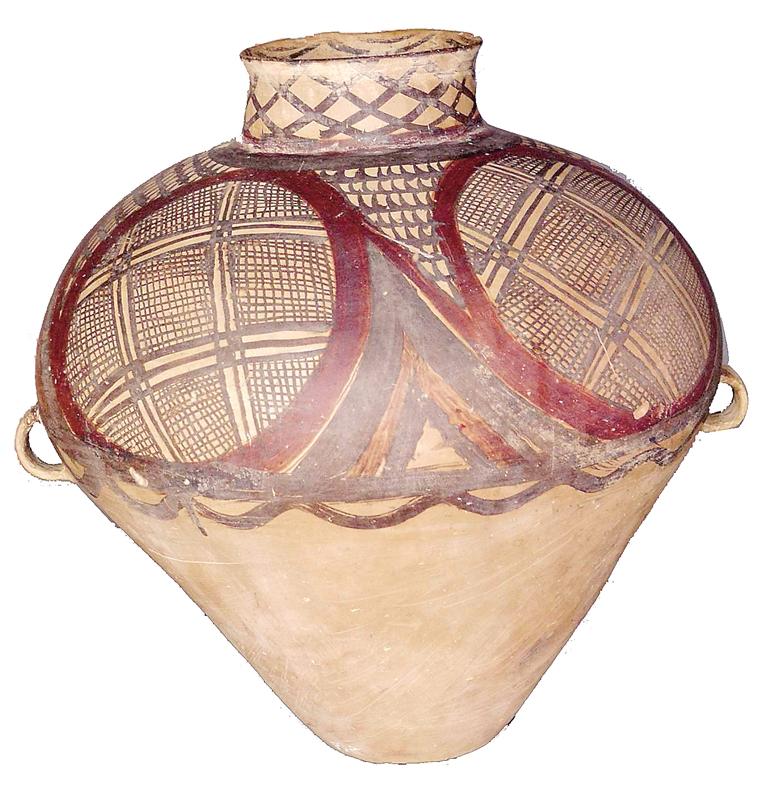 姓名:馬家窯文化半山類型四大圓圈雙耳彩陶罐 出生年代:距今約4650—4350年左右 住址:永靖縣博物館 體型:高46.6厘米,口徑15.6厘米,底徑12.2厘米 自我描述: 我是半山類型中的精品,屬于國家一級文物。泥質(zhì)紅陶,口沿微侈,直粗頸,闊肩,鼓腹,平底,腹有對稱雙耳,施黑紅彩,內(nèi)口飾水波紋六組,外口飾網(wǎng)紋,肩腹飾四大圓圈旋渦紋,間飾弧線鋸齒紋,腹中部飾寬帶紋,水波紋各一條,器型個體較大,胎體光滑,紋飾精致,色彩鮮艷。