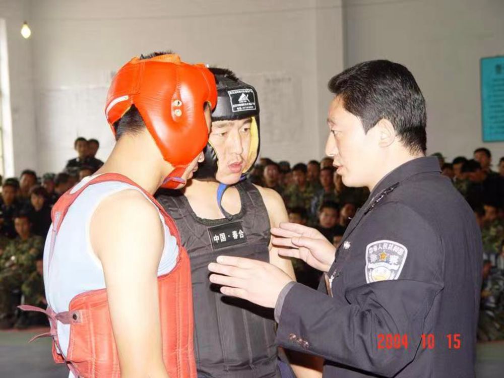 孔子曰:“用文事者、必有武備”。張飛虎從小就踐行了這樣的箴言。文事方面:1987年能考入西北師范大學(xué),可謂鳳毛麟角,在31年的執(zhí)教生涯中,他先后出版《中國警察擒敵制勝技術(shù)》《通備警用擒敵拳》《通備反暴恐制勝棍》《維穩(wěn)中國》等專著4部,主編了通備武學(xué)文集——《文心止戈集》和《高職體育與健康》、《警察體能訓(xùn)練教程》等教材10余部,發(fā)表論文60余篇。詩文無數(shù),且原創(chuàng)歌曲《通備萬古情》和《心中的胡楊》,尤其后者寫得蒼茫遒勁、寂寞堅強(qiáng)。今年4月,張飛虎將2021年新修訂的《公安機(jī)關(guān)人民警察內(nèi)務(wù)條令》17章232條創(chuàng)編成“《內(nèi)務(wù)條令》五字口訣”,以口訣的形式對條令內(nèi)容進(jìn)行了凝練和概括,方式新穎、內(nèi)容全面、朗朗上口,便于記憶,屬全國首創(chuàng)。這里只是列舉二三,便可見微知著。武備方面:1987 年,張飛虎在大學(xué)一年級就以劈掛拳、搜林棍的突出表現(xiàn)而躋身于西北師范大學(xué)武術(shù)隊并擔(dān)任隊長。1990 年大學(xué)四年級實習(xí)時,就在武威師范拉起 98 人的武術(shù)隊,心靈手巧的女弟子繡了一面刺有“飛虎隊”的大旗,從此,“飛虎隊”橫空出世。1991年,張飛虎到甘肅省人民警察學(xué)校任教后,組建警校武術(shù)隊——“飛虎隊”,成功地將通備等傳統(tǒng)武術(shù)傳到了警營,且代有人才。目前,甘肅警界飛虎隊員多為業(yè)務(wù)骨干、砥柱中流。1993年,參加河南陳家溝舉辦的全國“武術(shù)之鄉(xiāng)”武術(shù)散打比賽,位居第二,父兄皆有斬獲,其父被國家體育總局評為“中華武林百杰”。其后,與其兄張飛鵬聯(lián)袂在《甘肅公安》雜志上專辟《招招制敵》欄目,推介通備實用擒拿招法,每周一期,歷 8 載 168 期,有力地推廣了通備武學(xué)等傳統(tǒng)武術(shù)。他將技擊放在首位,“一招制敵”理念為公安民警提供了訓(xùn)練范本和擒敵指南。新世紀(jì)以來,張飛虎及父兄將傳統(tǒng)武術(shù)推出國門,走向世界。2009 年 5 月法國國防部致函邀請張飛虎赴法講學(xué),給法國特警(CS)著重傳授了為期一月的《警察干預(yù)技術(shù)》和通備實用招法,取得圓滿成功,同時他本人被法國理工大學(xué)聘請為客座教授。2012年被評為甘肅省第七屆高校教學(xué)名師;2015年被評為甘肅省警務(wù)實戰(zhàn)技能教學(xué)訓(xùn)練團(tuán)隊帶頭人,2018年被推為“國際武道聯(lián)合會副主席”,2019年榮立甘肅省公安機(jī)關(guān)“人才警務(wù)工程”三等功,2021年被評為“全國公安優(yōu)秀教師”。