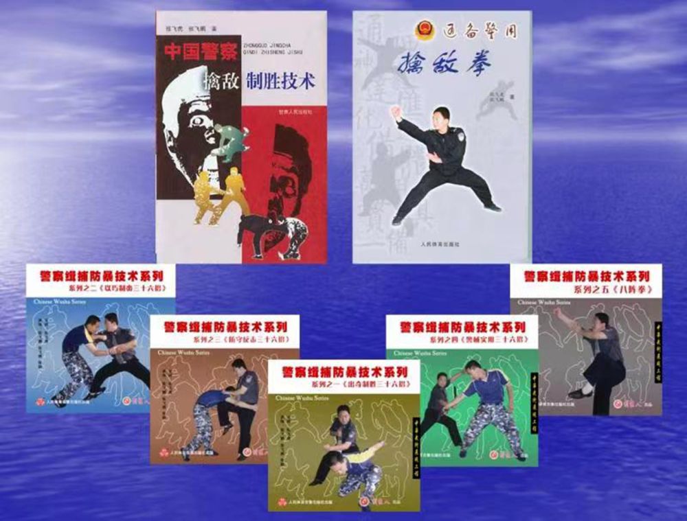 張飛虎在習(xí)武之余,學(xué)術(shù)上也一路精進(jìn),展現(xiàn)了他學(xué)文的天賦,他不但是警院教授,還曾是警院學(xué)報副主編,除了先后出版的4部學(xué)術(shù)專著外,還錄制了“警察緝捕防暴技術(shù)”系列教學(xué)光碟,在國內(nèi)外發(fā)行,并有一項科研成果申報為國家專利。一位武術(shù)名家,在學(xué)術(shù)上有如此驕人的成就,實屬不易。治學(xué)之余,張飛虎還分別在《甘肅公安》和《蘭州公安》雜志上創(chuàng)辦并主持《招招制敵》與《實戰(zhàn)練兵》欄目,解說并實戰(zhàn)演練制敵招法。專著《中國警察擒敵制勝技術(shù)》一書2010年被公安部評為“全國公安機(jī)關(guān)優(yōu)秀培訓(xùn)教材”,書中首次提出了“軍隊擒敵技術(shù)和警察擒敵技術(shù)相殊差別”的觀點,并對擒敵技術(shù)的每一招法進(jìn)行了生理學(xué)、生物力學(xué)的分析,從而科學(xué)地將擒敵術(shù)上升到一個新的理論與實戰(zhàn)融通的高度。更為可貴的是,《中國警察制勝技術(shù)》將法律精神融入其中,使招法的運用有了法律依據(jù),盡顯法制社會的時代精神,也與文明社會的要求不謀而合,將警察擒敵技術(shù)與實用法律無縫銜接。針對警察沿襲軍隊擒敵拳無主體身份特點之不足,創(chuàng)編了首套以警察擒敵技術(shù)為主體內(nèi)容的擒敵拳——《通備警用擒敵拳》,填補(bǔ)了公安機(jī)關(guān)無警用擒敵拳的空白。2021年,作為建黨100周年的獻(xiàn)禮,張飛虎與其摯友張勇先生聯(lián)袂出版《維穩(wěn)中國》,為國家反恐維穩(wěn)工作貢獻(xiàn)了綿薄之力。