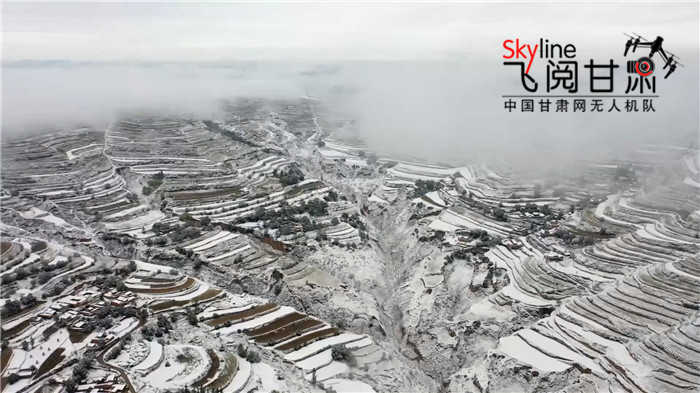 11月3日,定西境內(nèi)降雪,位于分水嶺一帶的高海拔地區(qū),梯田落雪,大地潔白。從空中俯瞰煙云縹緲,如走進(jìn)童話世界。(本網(wǎng)記者 宋芳科 通訊員王金生 )