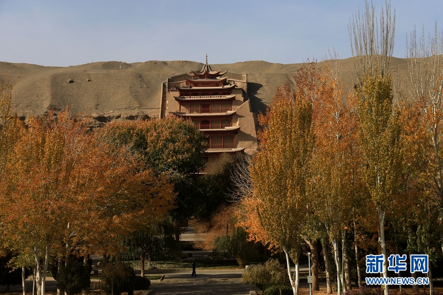 11月5日,在甘肅省敦煌市莫高窟景區(qū)拍攝的秋景。新華網(wǎng)發(fā) (張曉亮 攝)