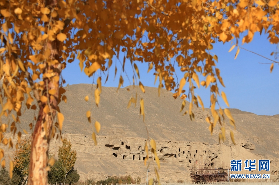 深秋時(shí)節(jié),世界文化遺產(chǎn)甘肅省敦煌市莫高窟盡染秋色,景色迷人,美不勝收。