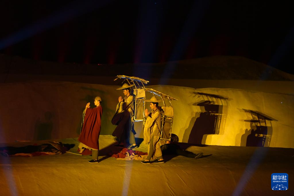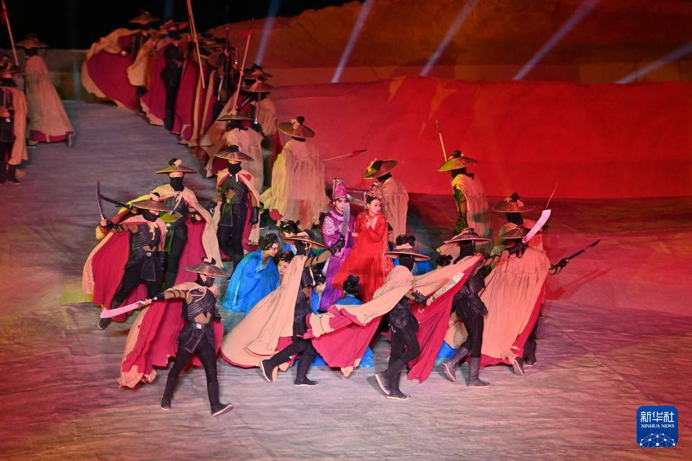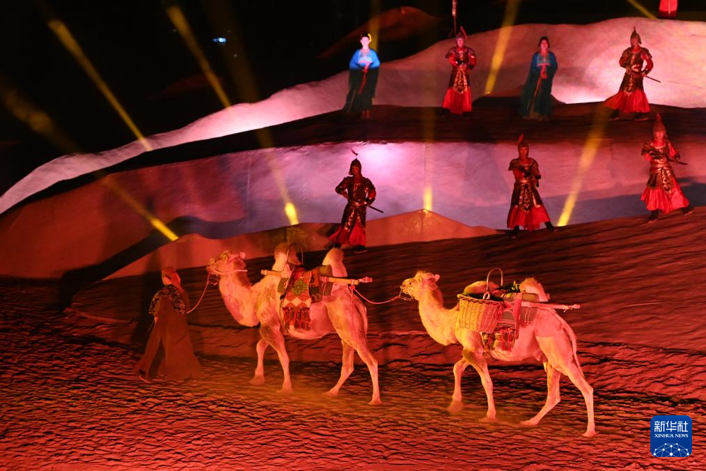 今年以來,脫胎于敦煌文化的洞窟沉浸式體驗劇《樂動敦煌》、室內(nèi)情景體驗劇《又見敦煌》、沙漠實景演出《敦煌盛典》和中國殘疾人藝術(shù)團(tuán)情景音畫劇《千手千眼》四場劇目在絲路名城甘肅敦煌同步上演,劇目將敦煌歷史底蘊(yùn)、服飾文化、樂舞文化等生動融合,為游客呈現(xiàn)出精彩絕倫的敦煌文化視覺盛宴,深受中外游客喜愛。截至8月10日,四大劇目今年已累計演出1175場次,觀看游客突破66萬人次。其中,《敦煌盛典》以敦煌鳴沙山月牙泉為背景,將沙漠景觀與現(xiàn)代舞美結(jié)合,將墻體燈光融入實景演出,講述了一段發(fā)生在古絲綢之路重鎮(zhèn)敦煌的愛情故事,展示了敦煌的歷史文化及人文風(fēng)貌。