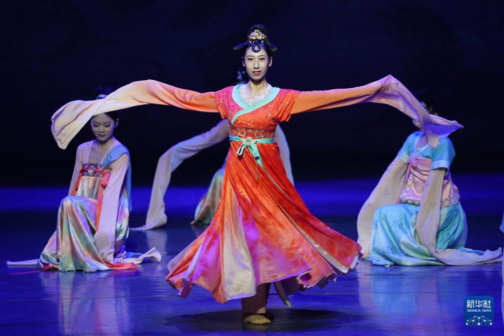 8月9日,演員在《樂動(dòng)敦煌》中表演。新華社記者 馬寧 攝