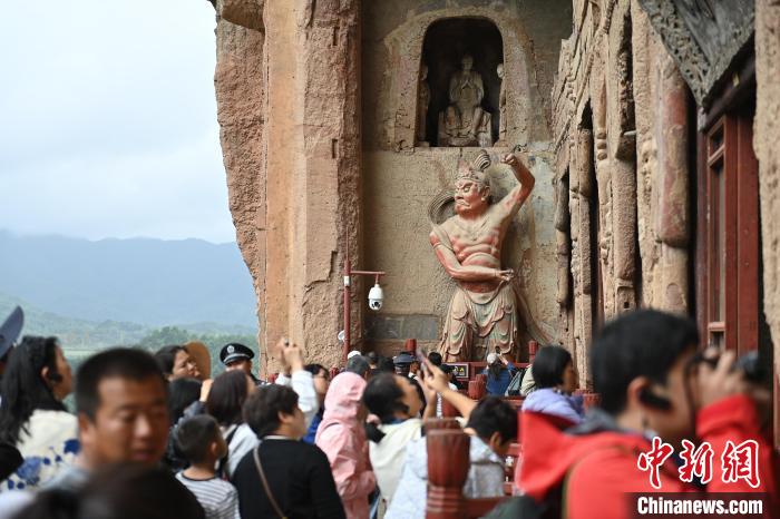 8月25日,參會人員與游客一同參觀麥積山石窟。李亞龍 攝