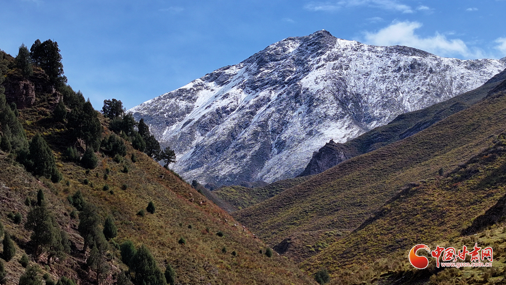 9月25日,位于甘肅省河西走廊的張掖市山丹馬場秋日初雪,遠(yuǎn)處的祁連山上積雪與松柏交相輝映,巖羊在雪地里悠閑覓食,宛如一幅和諧的生態(tài)畫卷。