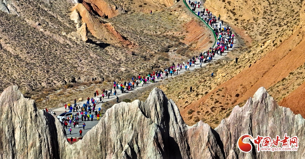 11月11日,1000多名群眾在甘肅省張掖市肅南裕固族自治縣外星谷景區(qū)徒步穿越,在領(lǐng)略大自然鬼斧神工的同時(shí)強(qiáng)健體魄。