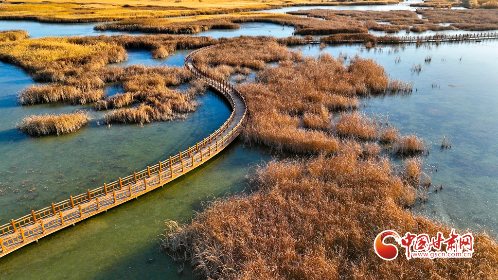 初冬時(shí)節(jié),張掖黑河濕地國(guó)家級(jí)自然保護(hù)區(qū)的蘆葦、蒲草等植物在秋風(fēng)、冬霜的吹拂下都變成了金黃色,密密的蘆花舞動(dòng)著裊娜的身姿,倩影婆娑,蘆葦叢里鳥鳴啾啾,整個(gè)濕地成為了一片金色的童話世界,讓人產(chǎn)生無限遐思。