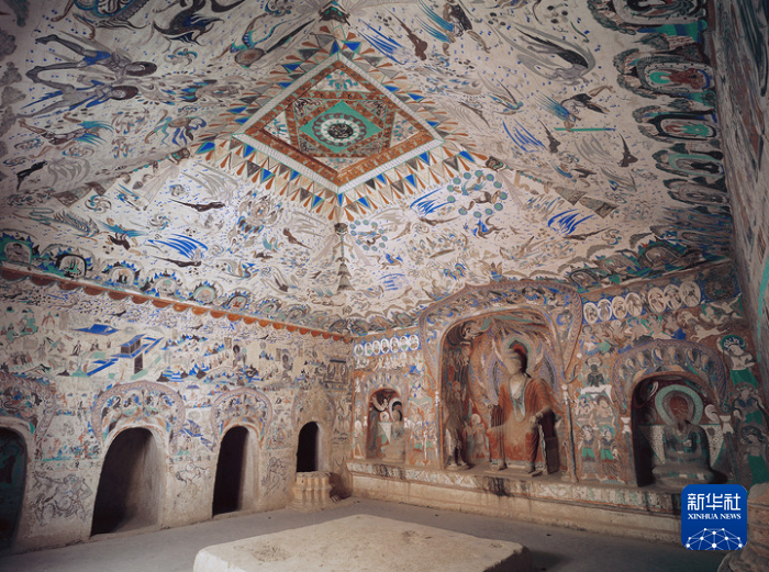莫高窟第285窟營(yíng)建于西魏,是莫高窟最早有紀(jì)年的洞窟,也是一座“萬(wàn)神殿”。壁畫中,既有古希臘神話中的阿波羅和狄安娜,也有中國(guó)神話中的伏羲、女媧;既有來(lái)自印度佛教的飛天,又有中國(guó)道教的羽人。