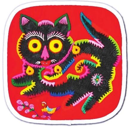 華池民間布貼畫(huà)是一種古老的民間工藝美術(shù),是隴東文化的重要組成部分。華池拼布創(chuàng)作以粗布為原料,色彩豐富鮮艷,剪貼的邊線明朗整潔,富有木刻版畫(huà)的刀木特點(diǎn)。其內(nèi)容多取材于人物、動(dòng)物、花鳥(niǎo)等題材,注重色彩對(duì)比,以大紅大紫的色彩,夸張化的描述,追求強(qiáng)烈的直觀效果,講究裝飾性;風(fēng)格浪漫稚拙,渾厚質(zhì)樸,氣韻生動(dòng)。