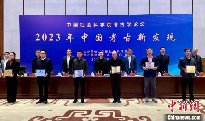 2023年中國考古新發(fā)現(xiàn)入選項(xiàng)目獲頒獎牌。中新網(wǎng)記者 孫自法 攝