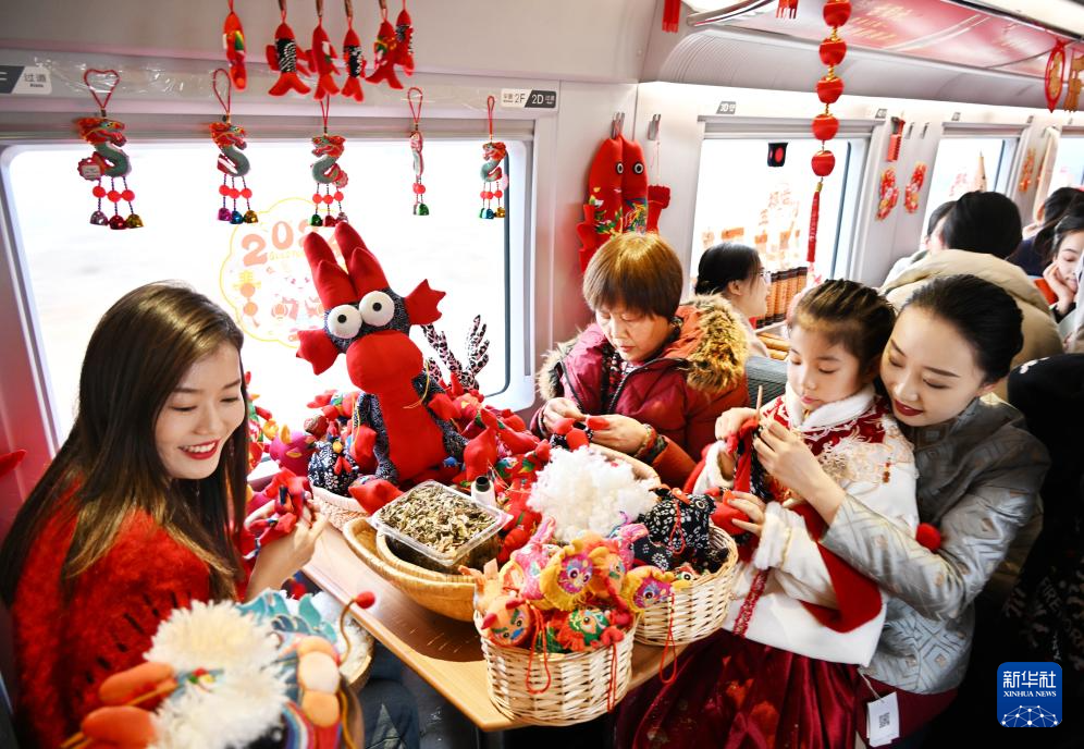 當(dāng)日,中國鐵路濟南局集團有限公司青島客運段在齊魯環(huán)游線G6955次列車上開展“年俗非遺進高鐵”活動,讓旅客在旅途中感受傳統(tǒng)文化的魅力,營造濃郁的節(jié)日氛圍。