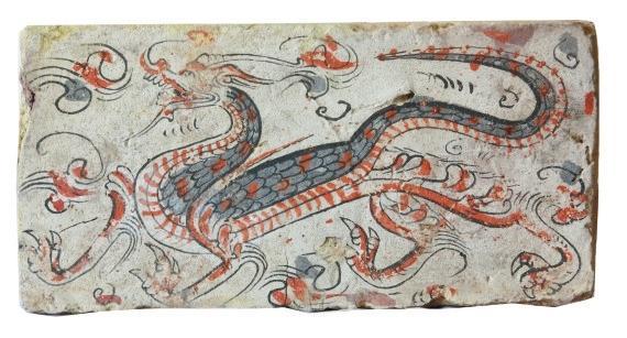 1981年出土于敦煌三危山老君堂遺址,為國(guó)家一級(jí)文物。長(zhǎng)52.5厘米,寬26.5厘米,厚9厘米。龍紋圖案為模印,凸起呈高浮雕狀。