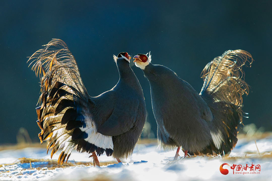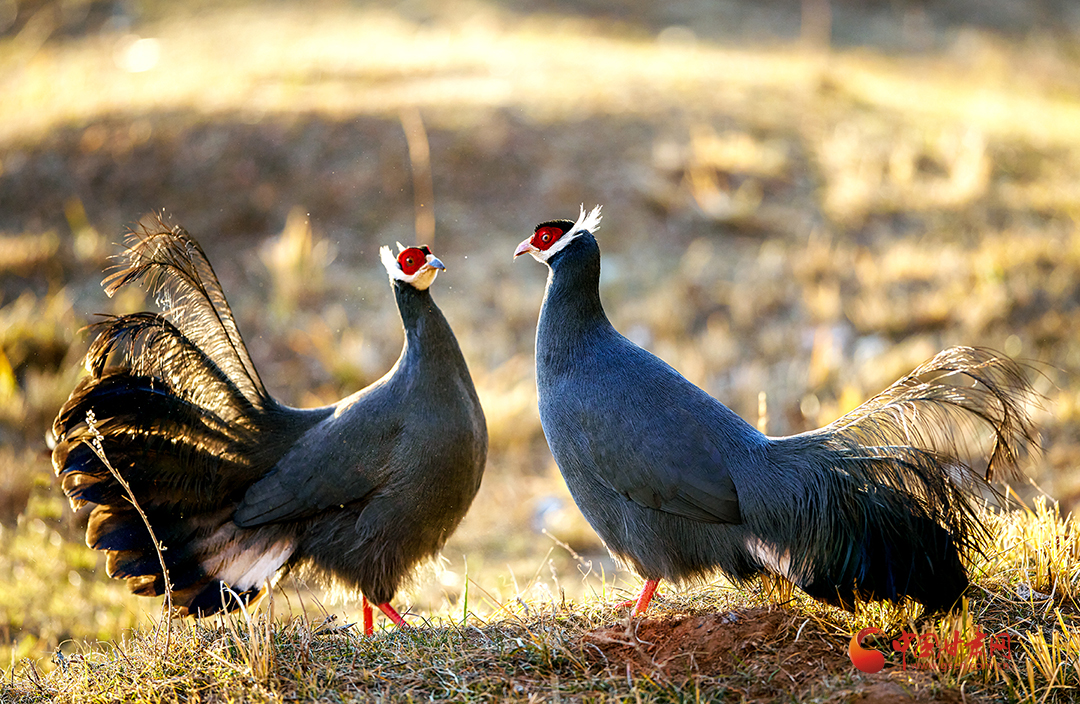 近日,祁連山國家公園甘肅省管理局張掖分局工作人員拍攝到國家二級保護(hù)野生動物藍(lán)馬雞覓食嬉戲場景。
