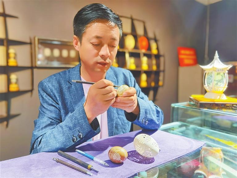 蛋雕改變了楊星國的生活,也改變了他對人生的追求。源于蛋雕藝術(shù)品呈現(xiàn)的精妙,慕名拜訪他的人很多,去他的工作室參觀或?qū)W習(xí),并向他請教問題時(shí),他都會細(xì)致、耐心地講解或演示,有時(shí)候還會讓游客自己上手體驗(yàn)。