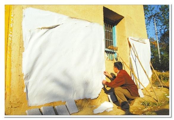 在李生武家的外墻上,我們看到一張張刷在墻上的構(gòu)樹皮紙,用手輕輕地?fù)崦鼈?,感覺附著了勞作的纖維顯得那么綿軟親切。