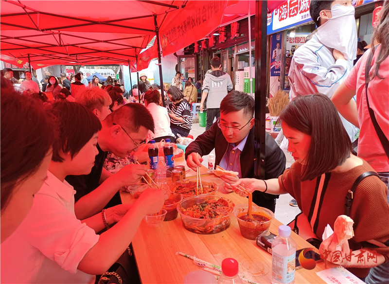 當(dāng)日,甘肅省文旅廳和天水市共同舉辦的“甘肅麻辣燙及特色美食大PK”和“甘肅文創(chuàng)非遺市集展銷”活動繼續(xù)吸引大量游客。