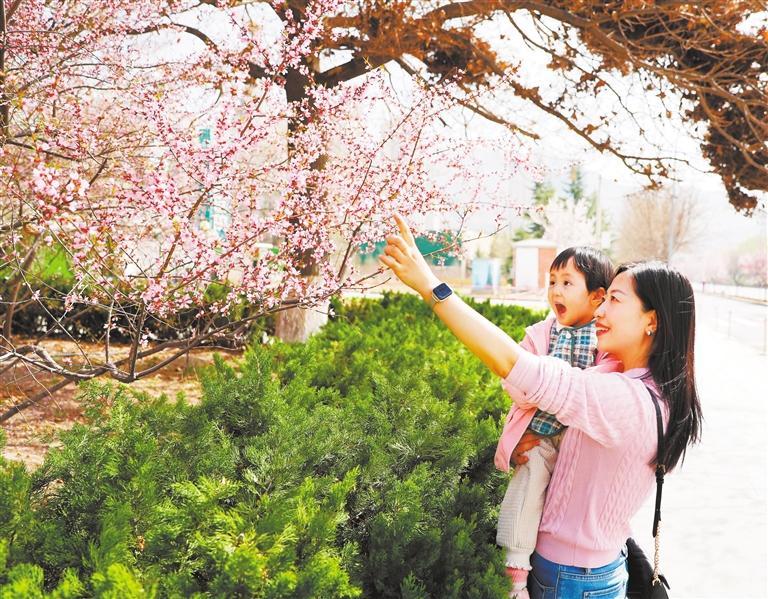 沿著黃河風(fēng)情線漫步,兩岸的花壇苗圃春意盎然,桃花、杏花、玉蘭花等各種花卉競(jìng)相開放,美不勝收。在這如畫的景色中,市民們或三五成群,或攜家?guī)Э?,在花叢中穿梭,拍照留念,享受著春天的美好時(shí)光。