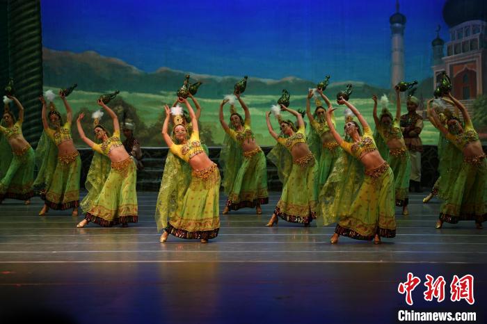 2023年4月17日晚,中國經(jīng)典舞劇《絲路花雨》在澳門百老匯劇場演出。(資料圖)甘肅演藝集團(tuán)供圖