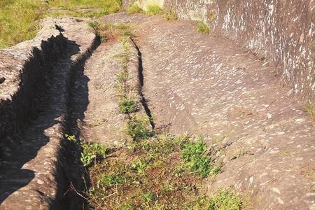 慶陽(yáng)石道坡古道遺存的車轍印。祿永峰 攝