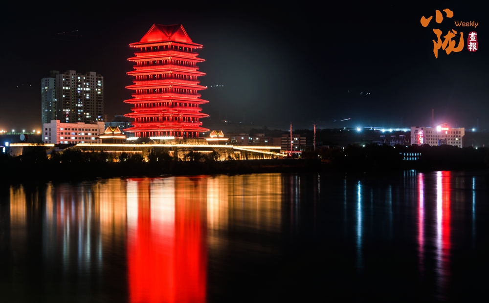 夜幕降臨,黃河之濱上的標志性建筑——蘭州黃河樓被點亮,顯得愈發(fā)美輪美奐。古風樓閣倒影在水中泛起粼粼波光,璀璨奪目的燈光點燃金城夜色。
