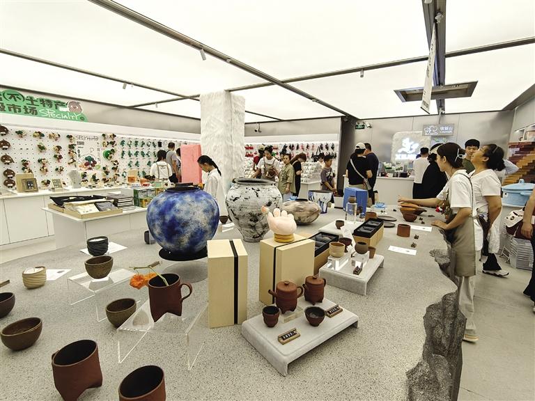 7月17日上午11時(shí),藝術(shù)生活館內(nèi),來(lái)自西安的大學(xué)生小朱入手兩個(gè)綠馬、一個(gè)甘肅麻辣燙毛絨玩具、兩盒禮品包裝三炮臺(tái)。“送家人,送同學(xué),都很好。我感覺(jué)這兒越逛越好玩,不虛此行。”小朱說(shuō)。