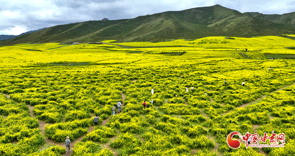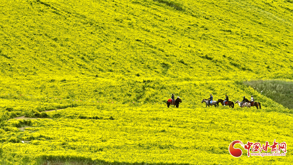 7月24日,位于祁連山北麓的甘肅省張掖市民樂(lè)縣扁都口休閑旅游景區(qū),山坡上油菜花競(jìng)相開(kāi)放,放眼望去,遍地金黃,宛如黃色花海依偎在祁連山腳下,非常壯觀,成為七月河西走廊一道亮麗的風(fēng)景,吸引了全國(guó)各地的游客前來(lái)觀賞游覽。