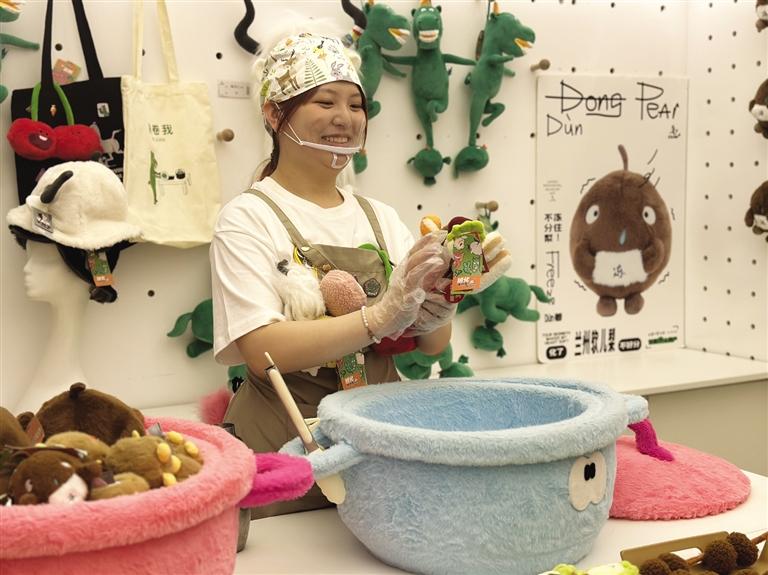 在甘肅省博物館藝術(shù)生活館的購物專區(qū),各種食材被做成了毛絨玩具,統(tǒng)一放進(jìn)加大號的毛絨砂鍋,顧客還可以根據(jù)口味“私人訂制”,最后得到一把全食材版的玩具花束。不少網(wǎng)友看過視頻后,留言“很符合年輕人的‘口味’。”