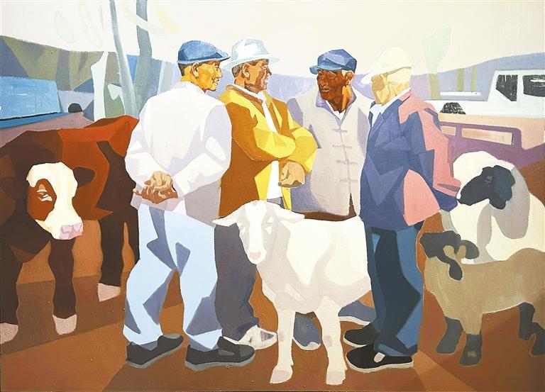 《和風》系列作品取材于禮縣鹽官鎮(zhèn)騾馬市場逢集時交易的場景。幼時,我經常隨父親去鹽官騾馬市場趕集,對這個場景熟悉且親切。也正因為如此,我對這個題材有著難以割舍的情愫,總是忍不住想通過畫筆呈現這一記憶。