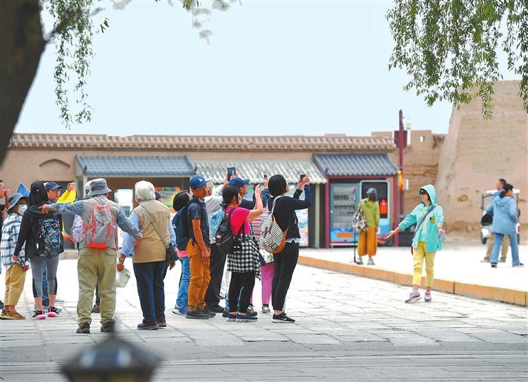 游客在嘉峪關關城拍照留念。新甘肅·甘肅日報記者 馬伊星