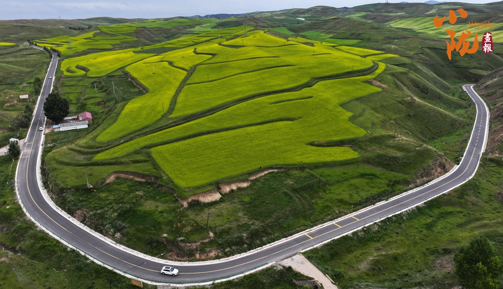 黃燦燦的油菜花鋪蓋在逶迤的山坡上,染盡山野,與此起彼伏的祁連山脈、古樸的民舍、一望無(wú)際的田野,共同繪就了一幅極具藝術(shù)感的“油畫(huà)”。
