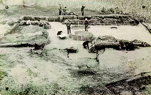 秦安大地灣遺址是1958年發(fā)現(xiàn)的,當(dāng)時(shí)正值全國(guó)文物大普查,隨即被列為省級(jí)文物保護(hù)單位。1978年開始發(fā)掘,總面積110萬(wàn)平方米,現(xiàn)揭露面積13700平方米,出土房址238座、灰坑357個(gè),墓葬79座、窯38座、灶臺(tái)106座,各種骨、石、蚌、陶器、裝飾器和生活器物共計(jì)8034件。特別是房屋建筑遺址,不僅規(guī)模宏偉,而且形制復(fù)雜。在發(fā)掘中就被公布為全國(guó)重點(diǎn)文物保護(hù)單位。