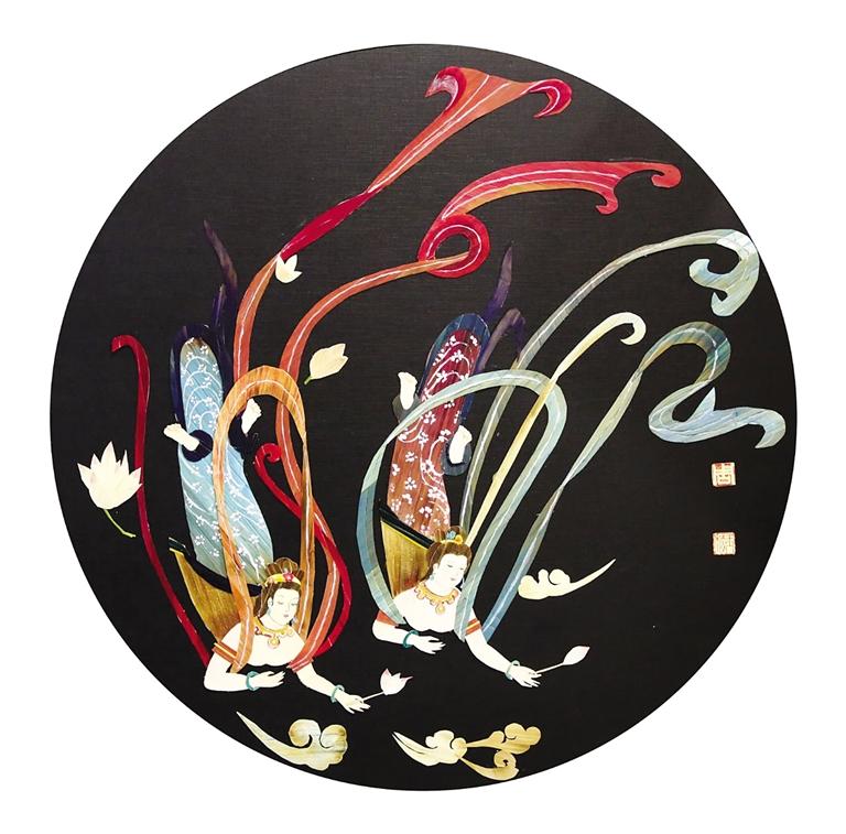 周玉梅曾經(jīng)說過,“如果我的生命里沒有了剪紙、繪畫這些東西,我的靈魂也將變得枯萎。”憑借著對繪畫的熱愛,她的麥稈畫作品幾乎達(dá)到了爐火純青惟妙惟肖的程度。在展覽現(xiàn)場,她的《親情系列之骨肉情深》麥稈作品呈現(xiàn)的是兩只老虎,幼虎憨態(tài)可掬,雌虎一改威嚴(yán)姿態(tài),舐犢情深的“老母親”形象活靈活現(xiàn)。在她親情系列的畫作中,無論是羔羊、奔馬、老黃牛等動物皮毛部分皆用細(xì)如針尖的麥稈粘貼而成,一幅畫作成千上萬根麥稈不僅考驗著作者的功力,更考驗著作者的耐力。作為甘肅山丹人,畫敦煌飛天是每一個甘肅人的情懷。因此,她創(chuàng)作的《飛天》畫作中,飛天身著彩色飄帶在空中飄逸飛舞,而這正是周玉梅畢生追求的藝術(shù)境界。