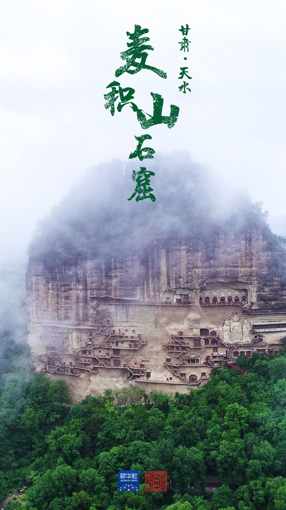 麥積煙雨是“秦州八景”之首。秦州是天水的古稱。登麥積山遠(yuǎn)眺,只見重巒疊嶂,滿目蒼翠中,自然景觀與文化遺產(chǎn)完美融合,恰如一幅山水畫。