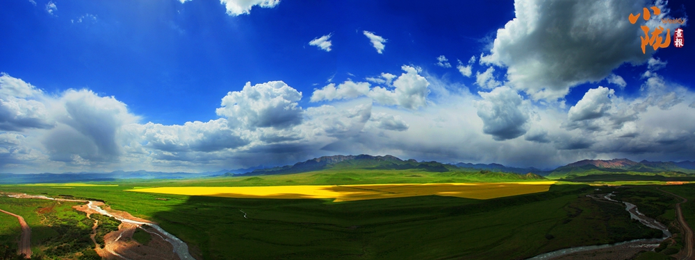 祁連山北麓的扁都口,大片的油菜花夾雜著一塊塊碧綠色的青稞,高低起伏,綿延無(wú)窮,放眼望去,像金黃色的花海,身處此景,仿佛又回到了美麗的春天。