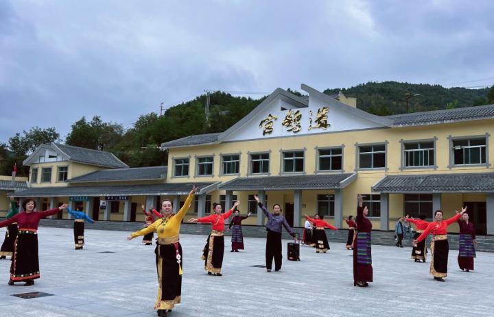 在官鵝溝大景區(qū),伴隨著當?shù)卦瓌?chuàng)旅游歌曲《娥嫚》的旋律,游客們和身著民族服飾的表演者在山水之間載歌載舞,現(xiàn)場不時響起陣陣掌聲和歡呼聲。“如詩如畫的美景,獨具魅力的民族文化,歌舞聲把節(jié)日氣氛拉滿。”周敏說。