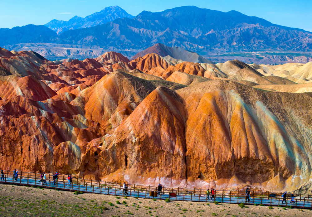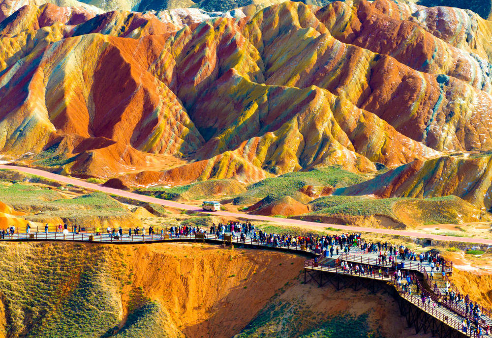 入秋以來(lái),甘肅省張掖市臨澤縣七彩丹霞景區(qū)迎來(lái)游客高峰。丹霞地貌色彩艷麗、造型奇特,使游客仿佛置身畫境,令人流連忘返。