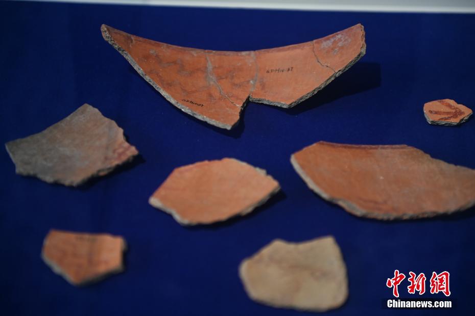 ?。保霸拢玻踩眨玻埃玻辞嗄隄h學(xué)家研修計(jì)劃甘肅班團(tuán)隊(duì)22個(gè)國家的青年漢學(xué)家,走進(jìn)甘肅省天水市秦安縣大地灣遺址參觀并進(jìn)行專題研修。大地灣遺址是新石器時(shí)代大型聚落遺址,出土了中國乃至世界上最早的彩陶文化、最早的文字符號(hào)、種植生產(chǎn)了中國第一批糧食品種黍、出現(xiàn)了最早的宮殿式建筑、發(fā)明了世界最早的水泥地面、創(chuàng)造了最早的繪畫作品——F411地畫。圖為大地灣博物館展品最早的文字符號(hào)彩繪符號(hào)陶片。中新社記者 李亞龍 攝