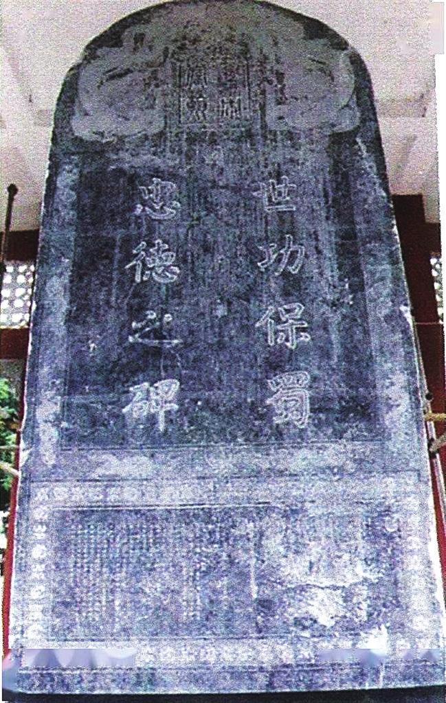 碑陽額刻二龍圖,篆“皇帝宸翰”,字徑0.22米,碑身刻宋寧宗書“世功保蜀忠德之碑”八字,楷書豎行2行,行間刊有篆書“敕令寶璽”和楷書“修政殿書”八個小字,四周環(huán)刻八龍騰云圖。碑文刻吳挺之子吳曦自記《感恩表記》,碑文楷書計(jì)8461字,內(nèi)容記載吳氏三代抗金保蜀的功績。
