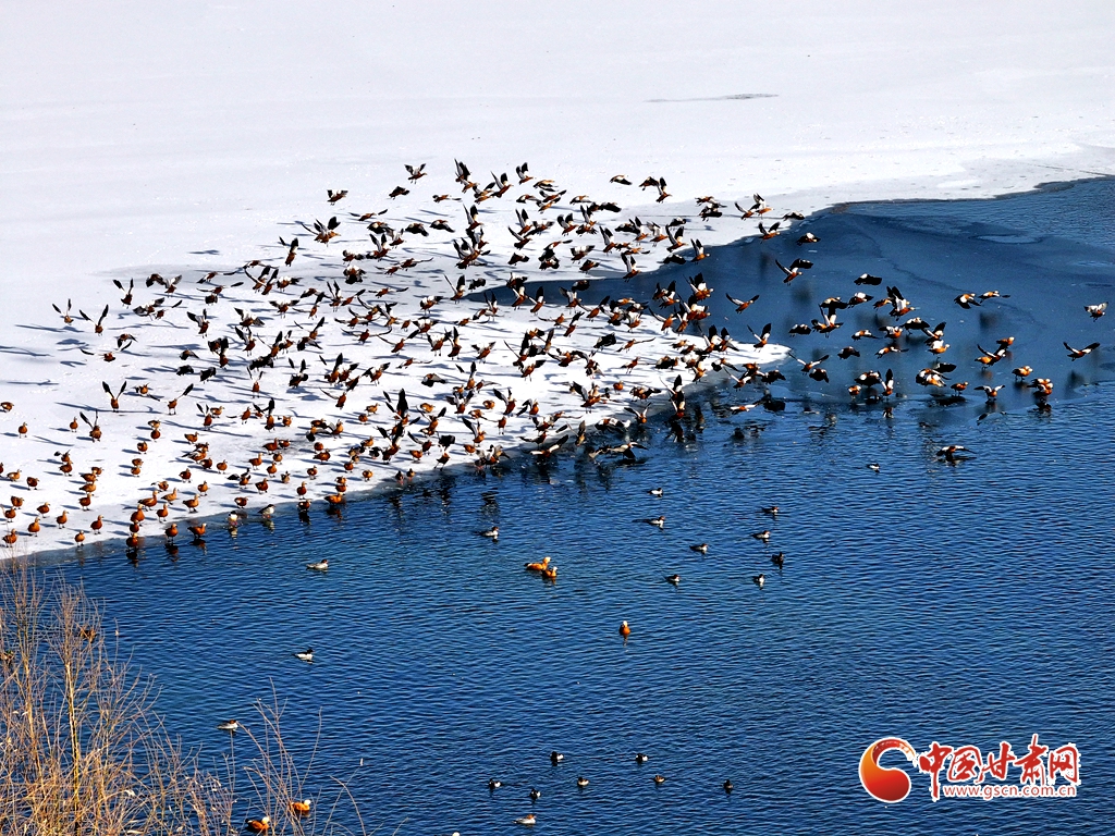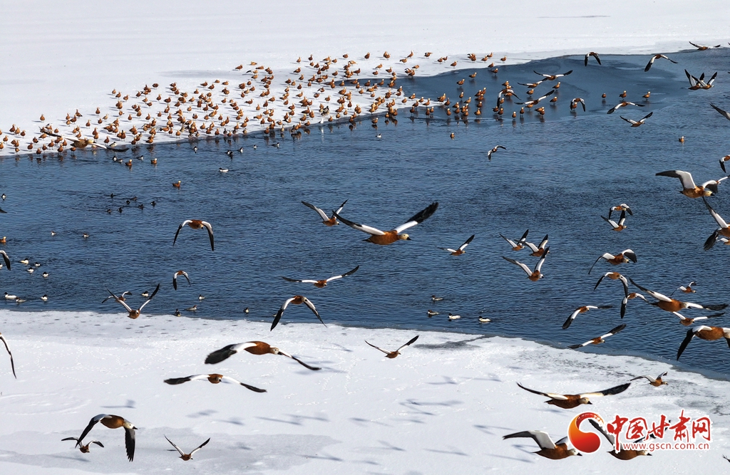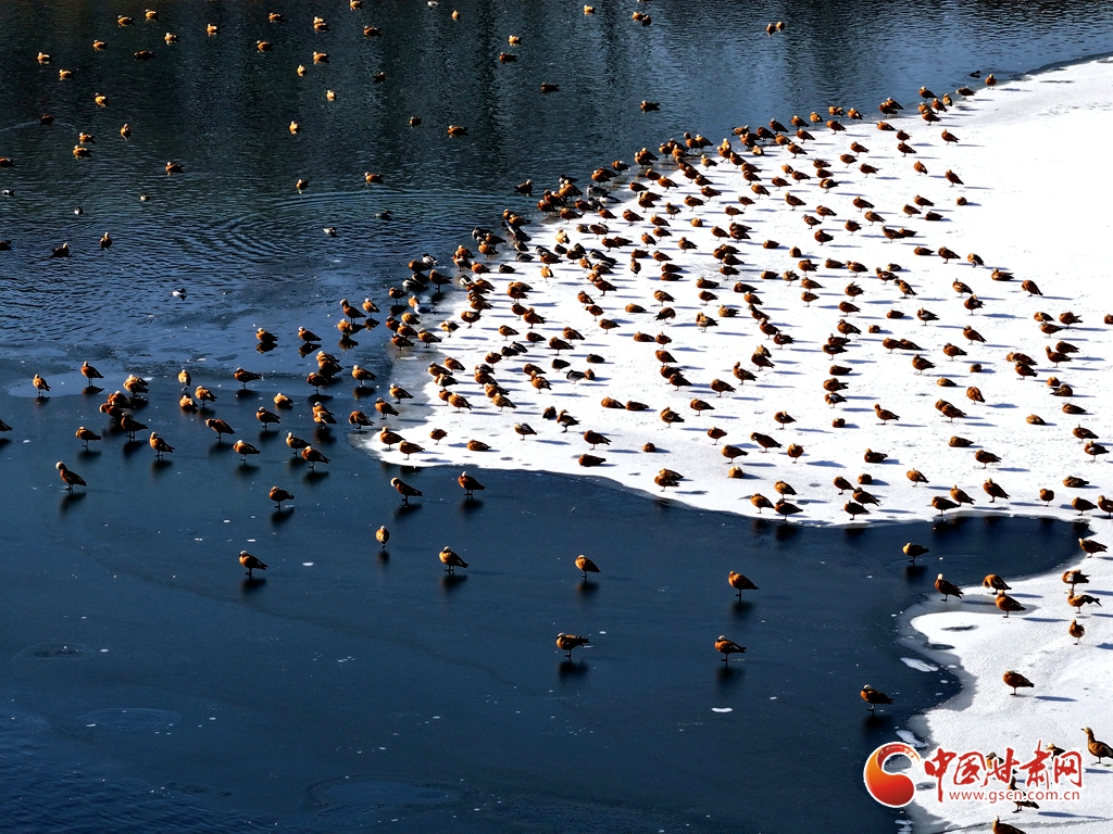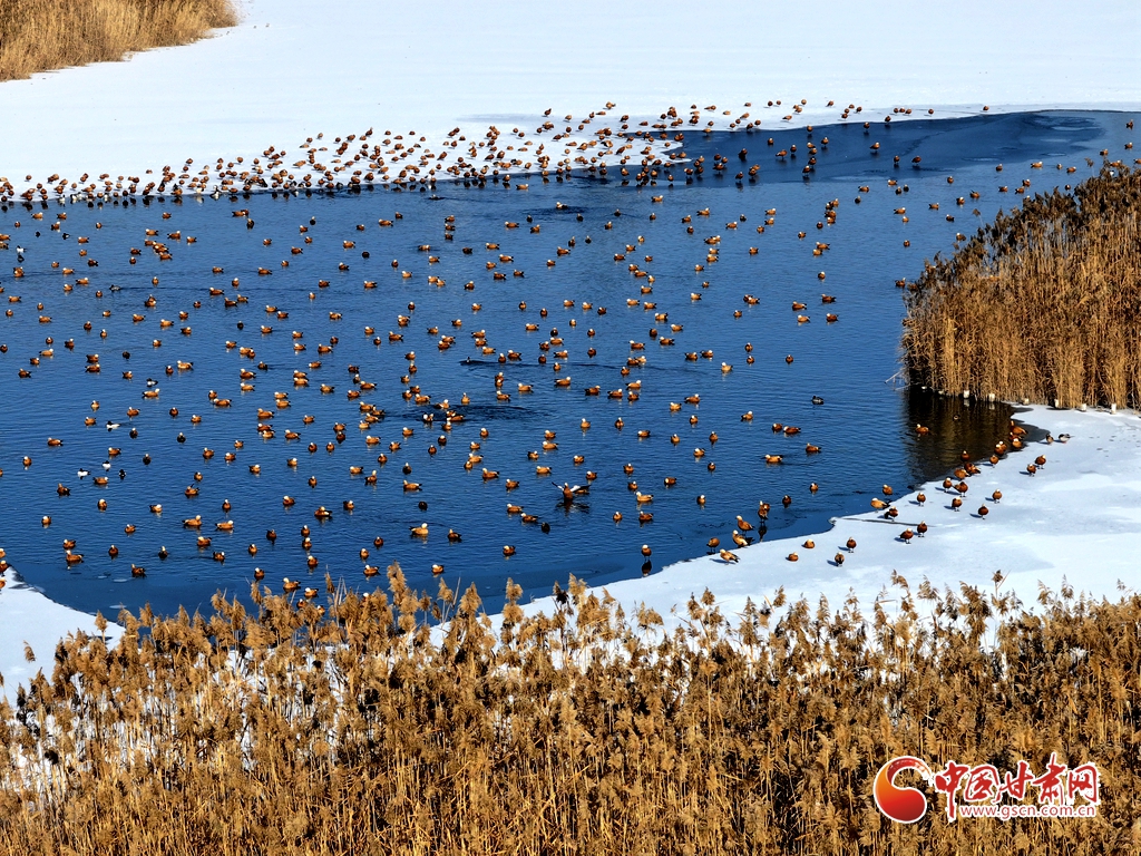 1月11日,甘肅省張掖國家濕地公園里,成群的赤麻鴨棲息覓食,成為濕地一道亮麗風(fēng)景。